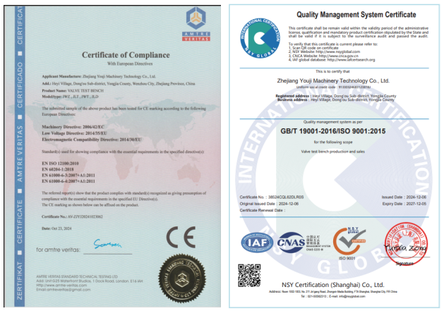 浙江優(yōu)機(jī)閥門試驗(yàn)臺車間的生產(chǎn)線JWZ\JWT\JLTD等系列產(chǎn)品順利更新通過了歐盟 CE認(rèn)證編號和ISO9001質(zhì)量管理體........