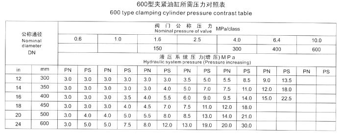 五、測試閥門時,首先根據被試閥門試驗壓力,要求參照《壓緊油缸所需壓力對照表》中液壓壓緊系統壓力值,進行增壓壓力調節,嚴禁增壓壓力值超高、防止被試閥門變形損壞。