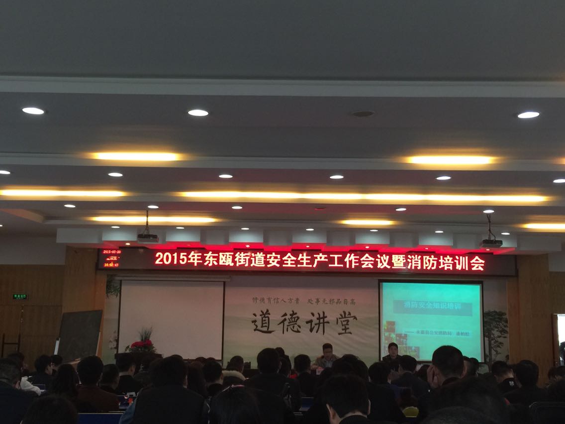 3月21日東甌街道(永嘉東甌工業園區)安全生產工作會議暨消防培訓會在東甌工業園區舉行,本次會議有東甌街道黨委副書記主任杜國平主持,工業園區副主任做去年工作報告和今年的工作重點,園區副書記朱琳哲重點對消防的重要性、消防預防步驟、事故案例等做了詳細的介紹和分析,并囑咐個企業負責人和主管部門嚴把安全生產關,定期做安全檢查,對達不到安全生產標準的部門和企業馬上整改,做到萬無一失。