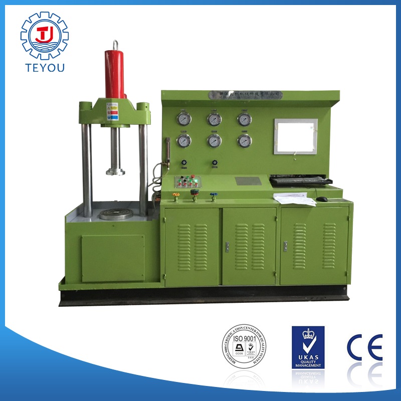 工作過程:根據閥門的公稱通徑和壓力調整油缸壓緊壓力——壓緊工件——打開低水泵快速注水——打開高壓水泵——保壓計時——卸壓、復位。