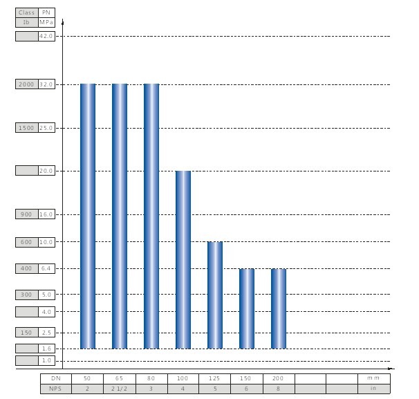 The test range of valve nominal diameter and nominal pressure for JLT-200 model